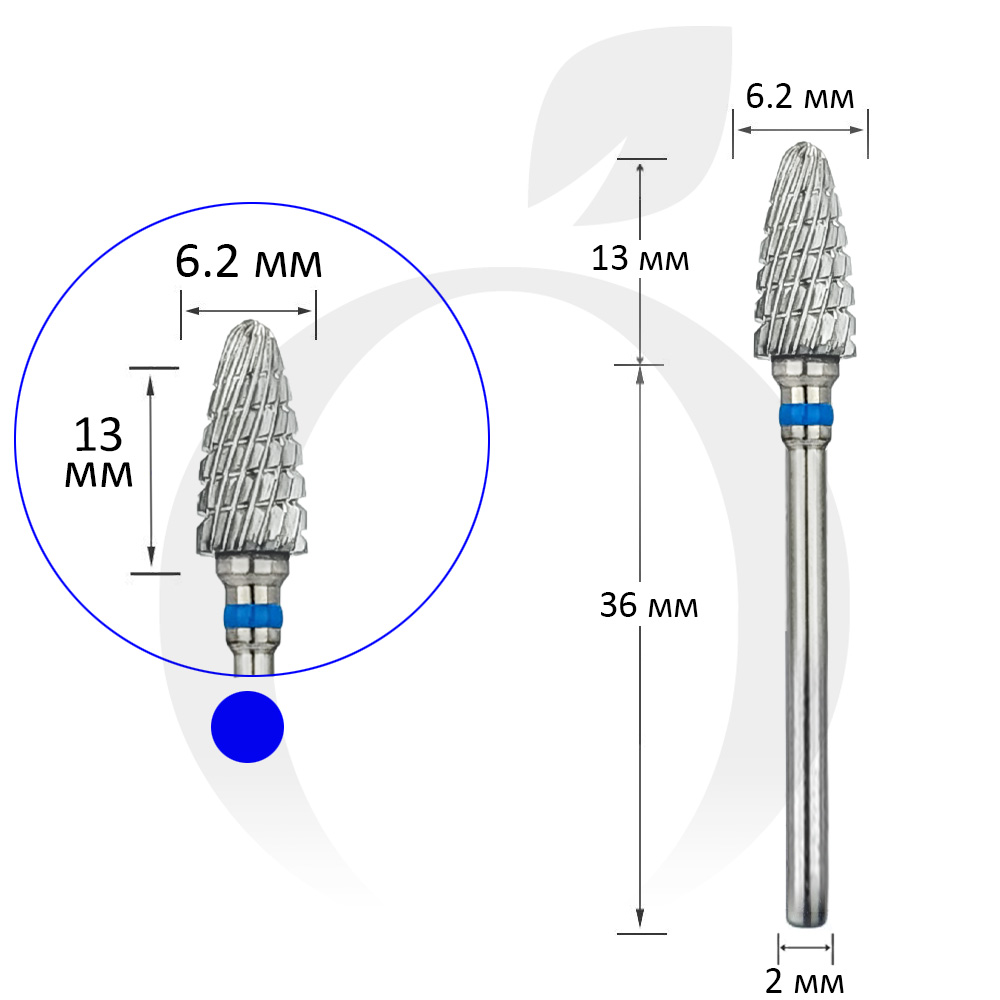 Фреза твердосплавна кукурудза синя 6.2 мм, робоча частина 13 мм