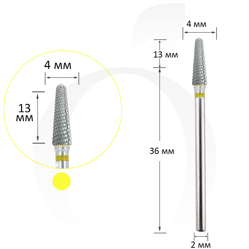 Фреза конус твердосплавна жовта 4 мм, робоча частина 13 мм