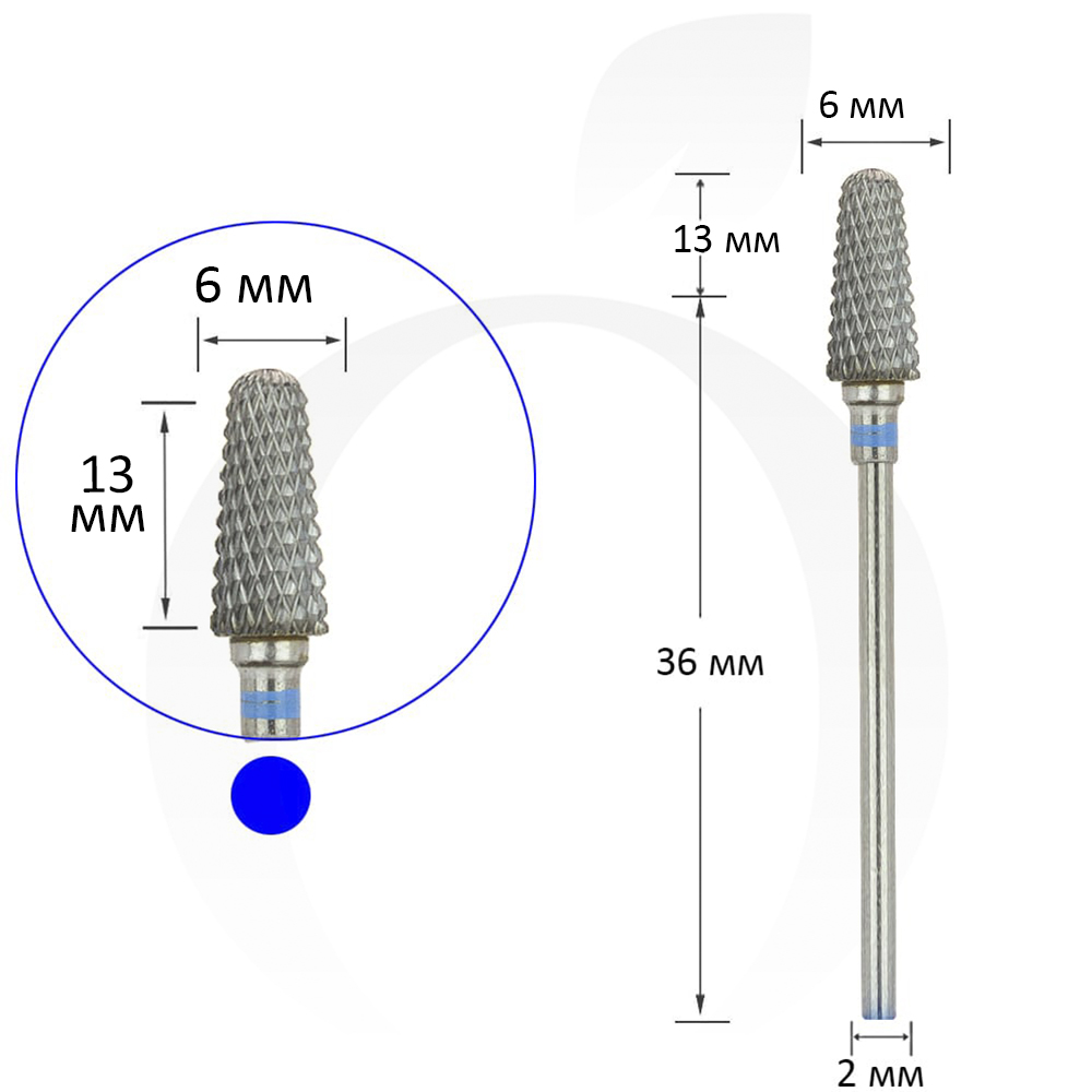 Фреза конус твердосплавна синя 6 мм, робоча частина 13 мм