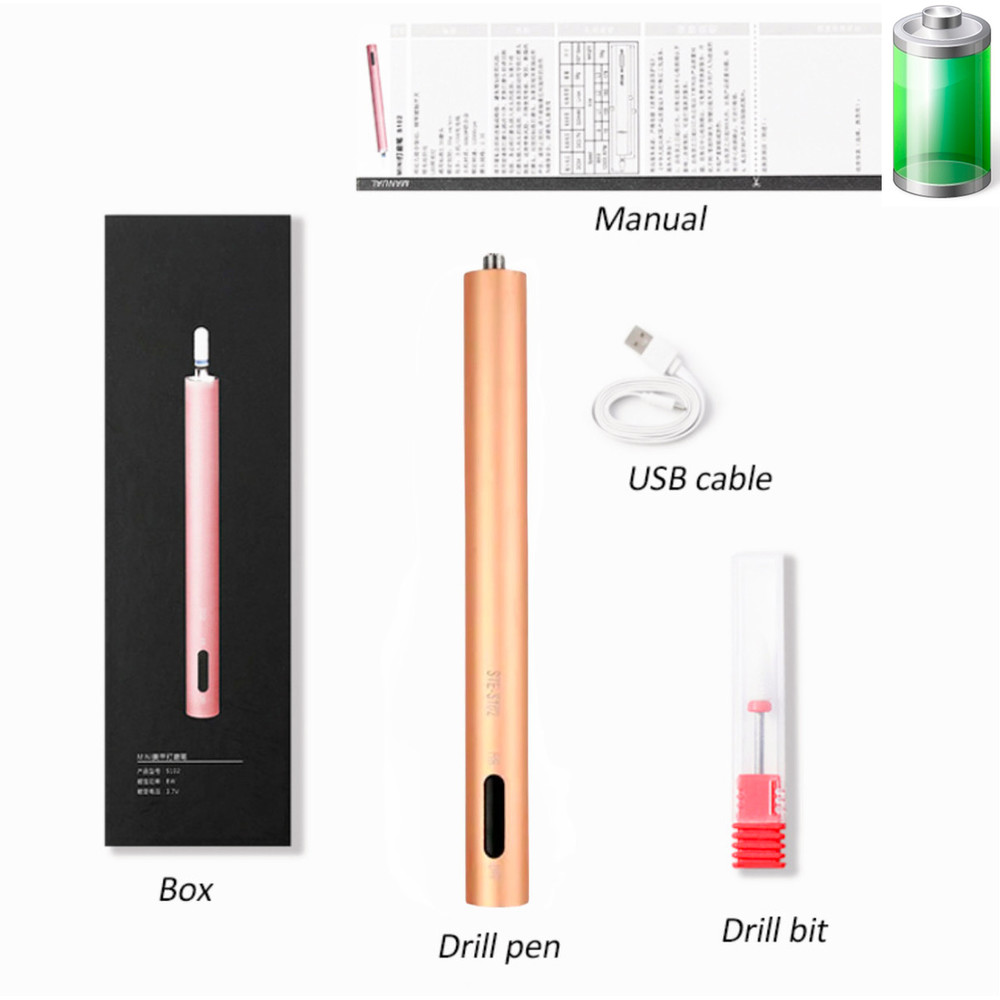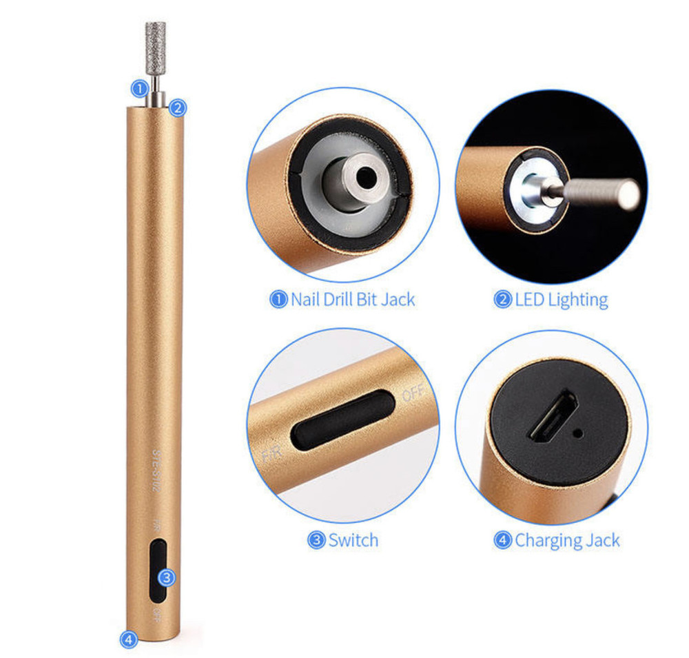 Фрезер – ручка STE-S102 на 15000 об.хв. для апаратного манікюру, на акумуляторі + USB вхід Gold