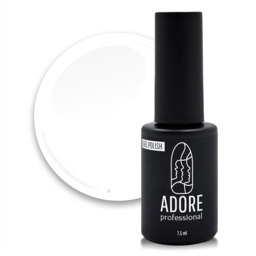 Гель-лак Adore professional представлений палітрою щільних, насичених кольорів. В основній палітрі гель-лаків, серед яких кожен майстер знайде для себе, як і класичні кольори (чорний, білий, червоний, яскраво-рожевий), так і завжди актуальні модні відтінки (блідо-зелені, ніжно-рожеві, блакитні та яскраві неонові кольори для літа). Гель-лаки ADORE мають середню консистенцію, що не розтікаються при нанесенні, забезпечують стійкий гель-лаковий манікюр на 3 тижні, без сколів, тріщин і подряпин.
