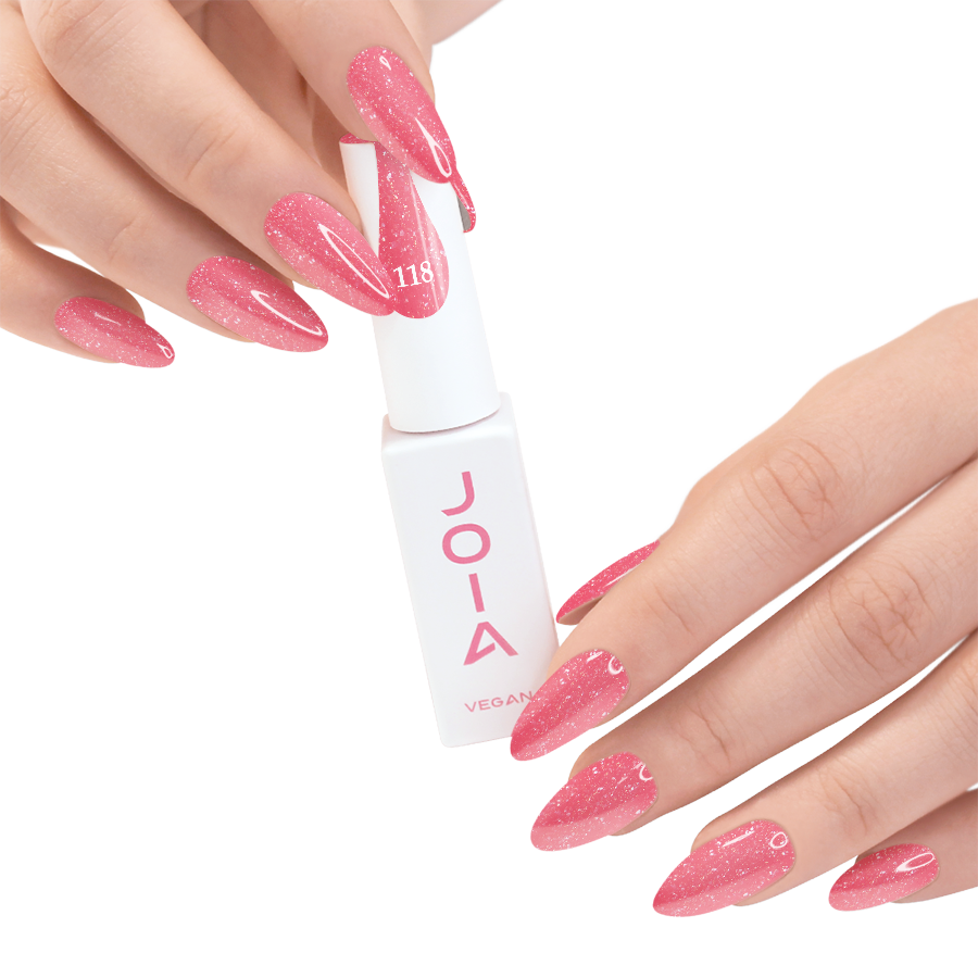 Гель-лак JOIA vegan 118 – ніжно-кораловий з блискітками, який неодмінно заполонить серця багатьох. Танець іскор у цьому відтінку переносить Вас у світ дівочих вечірок, солодкої вати та безтурботності – це ті щасливі моменти, яких так не вистачає у повсякденності. Хочеться дозволити собі більше і поринути у казкову атмосферу ідеального рожевого. І, пам’ятайте – ви цього варті!