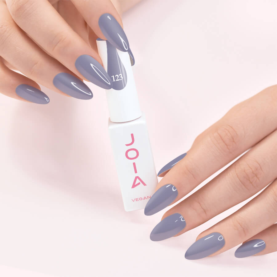 Гель-лак JOIA vegan 123 – бузково-сірий колір, насичений відтінок ароматного бузку з терпким сірим підтоном. Як бузок приносить свою ніжність і аромат у наше життя, так і ми можемо прикрашати свої дні моментами радості, доброзичливістю та внутрішньою гармонією. Цей колір нагадує нам, що важливо додавати краси до кожної миті життя, навіть у повсякденних речах.