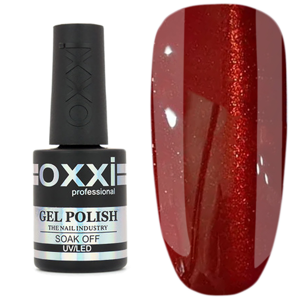 Гель-лак Oxxi Cat Eyes - оригінальне покриття з мерехтливими, об'ємними переливам мікрочастинок, які формують химерні глибокі малюнки на нігтях, створюють ефектний дизайн, надають манікюру риси загадковості, особливого шику. Гарну блискучу смужку, яка імітує котяче око, можна зробити за допомогою спеціального магніту.