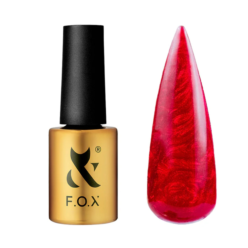 Гель-лак F.O.X Aurora 004 - гель-лак насиченого червоного відтінку, який має перламутровий ефект або мерехтливий відтінок, що нагадує перлини. Цей тип гель-лаку зазвичай використовується для створення елегантних і вишуканих манікюрів і педикюрів.