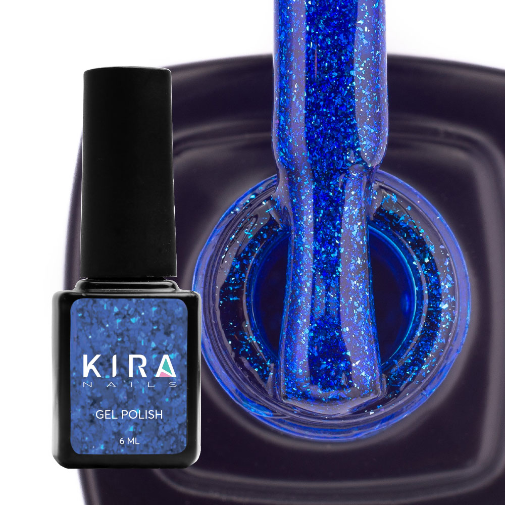 Гель-лак Kira Nails 24 Karat №010 (синій з блискітками), 6 мл