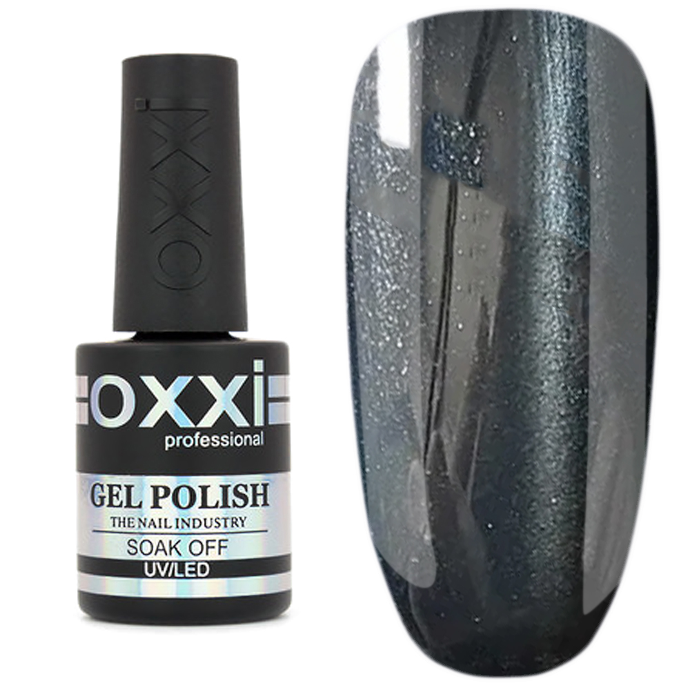 Гель-лак Oxxi Cat Eyes - оригінальне покриття з мерехтливими, об'ємними переливам мікрочастинок, які формують химерні глибокі малюнки на нігтях, створюють ефектний дизайн, надають манікюру риси загадковості, особливого шику. Гарну блискучу смужку, яка імітує котяче око, можна зробити за допомогою спеціального магніту.