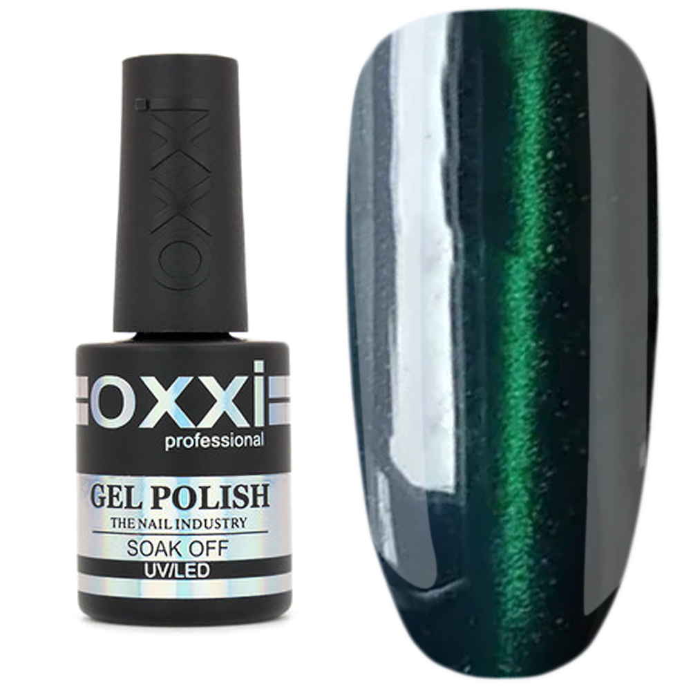 Гель-лак Oxxi Cat Eyes - оригінальне покриття з мерехтливими, об'ємними переливам мікрочастинок, які формують химерні глибокі малюнки на нігтях, створюють ефектний дизайн, надають манікюру риси загадковості, особливого шику. Гарну блискучу смужку, яка імітує котяче око, можна зробити за допомогою спеціального магніту.