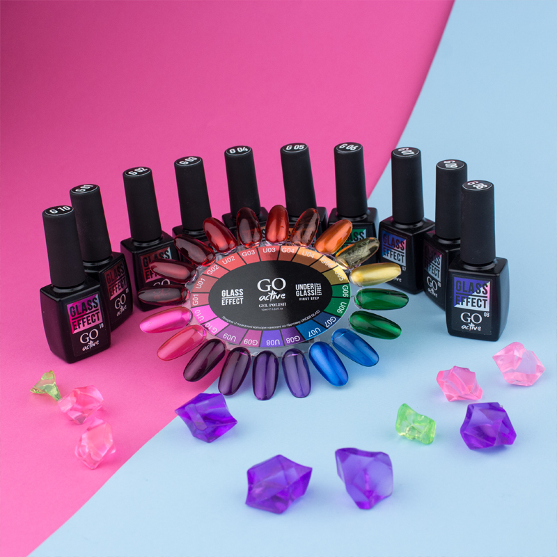 GO Active Glass Effect №08 (напівпрозорий бузковий, вітражний) 10 мл - напівпрозорий гель-лак з невеликою кількістю пігменту, який використовується для створення різних дизайнів нігтів. Особлива консистенція та формула виготовлення дозволяють виконувати дизайн із ілюзією акваріума. Лак отримав свою назву завдяки красі вітражного скла, які передають відтінок у межах свого кольору. Для любительок експериментів і незвичайних нігтьових покриттів цей лак буде доречним.