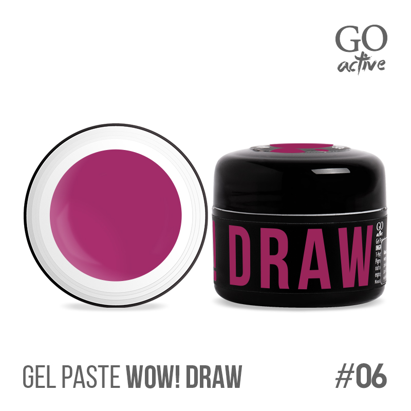 Гель-паста з універсальними властивостями та широким спектром застосування в нейл-дизайні – мрія будь-якого професійного майстра. Адже це так зручно - один матеріал і маса можливостей! Гель-паста Go Active Gel Paste Wow Draw є таким матеріалом. І вона просто приречена на кохання та популярність! Щільна пігментація гарантує ідеальну насиченість художньому дизайну, а помірковано густа текстура забезпечить відсутність розтікань та високий комфорт у роботі. Гель-паста з такими характеристиками легко втілить у реальність будь-яке бажання, будь то промальовування дрібних деталей та тонких ліній чи об'ємна композиція.