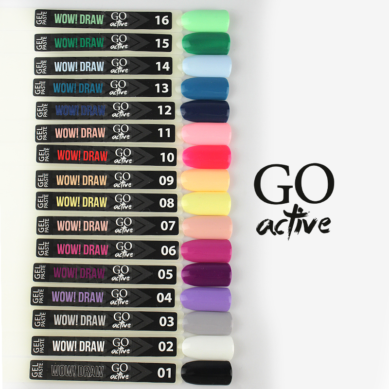 Гель-паста з універсальними властивостями та широким спектром застосування в нейл-дизайні – мрія будь-якого професійного майстра. Адже це так зручно - один матеріал і маса можливостей! Гель-паста Go Active Gel Paste Wow Draw є таким матеріалом. І вона просто приречена на кохання та популярність! Щільна пігментація гарантує ідеальну насиченість художньому дизайну, а помірковано густа текстура забезпечить відсутність розтікань та високий комфорт у роботі. Гель-паста з такими характеристиками легко втілить у реальність будь-яке бажання, будь то промальовування дрібних деталей та тонких ліній чи об'ємна композиція.