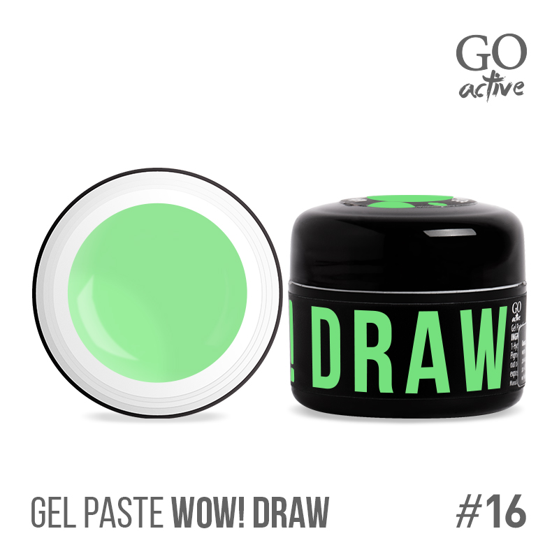 Гель-паста з універсальними властивостями та широким спектром застосування в нейл-дизайні – мрія будь-якого професійного майстра. Адже це так зручно - один матеріал і маса можливостей! Гель-паста Go Active Gel Paste Wow Draw є таким матеріалом. І вона просто приречена на кохання та популярність! Щільна пігментація гарантує ідеальну насиченість художньому дизайну, а помірковано густа текстура забезпечить відсутність розтікань та високий комфорт у роботі. Гель-паста з такими характеристиками легко втілить у реальність будь-яке бажання, будь то промальовування дрібних деталей та тонких ліній чи об'ємна композиція.