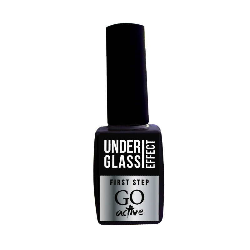 Декоративна основа GO Active Under Glass Effect First Step – спеціальне нейл-покриття, яке дозволяє створювати на нігті ефект дзеркала. Застосовується разом із вітражними гель-лаками GO Active Glass Effect. Має сріблястий колір. Наноситься тонким шаром на ідеально рівну нігтьову поверхню, попередньо покриту топом без липкого шару (топ для гель-лаку без липкого шару GO Active Iron Top Self Restoring або топ для гель-лаку без липкого шару GO Active Mega Shine Top Coat) або каучуковою базою для гель-лаку зі знятим липким шаром. Після нанесення сріблястої основи Go Active Under Glass Effect потрібно дати їй висохнути на відкритому повітрі 2 хвилини та ще на 30 секунд помістити в лампу.