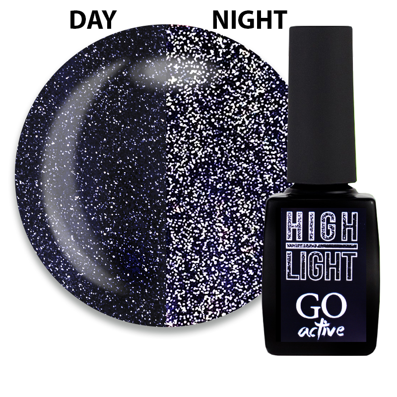 Світловідбиваючий ефект у нейл-дизайні один із найтрендовіших, яскравих та актуальних. GO Active High Light (Го Ектив Хай Лайт) - колекція гель-лакових покриттів, яка дуже вдало передає його і дозволяє легко втілити на нігтики. Кожен колір грає по-своєму, яскраво сяє і наче розсипає іскорки, як тільки на нього потрапляє промінь світла. Секрет такого ефекту - спеціальні дрібні світловідбиваючі частинки, якими щільно насичена текстура гель-лаків. Їх здатність до світловідбиття дуже висока, тому гель-лаки GO Active High Light буквально заворожують своїм сяйвом, яке змінює інтенсивність від спокійнішої до сліпуче яскравої (залежить від світла). М'яке мерехтіння вдень і максимально сильне під променями нічних софітів – успіх та захоплення гарантовані!