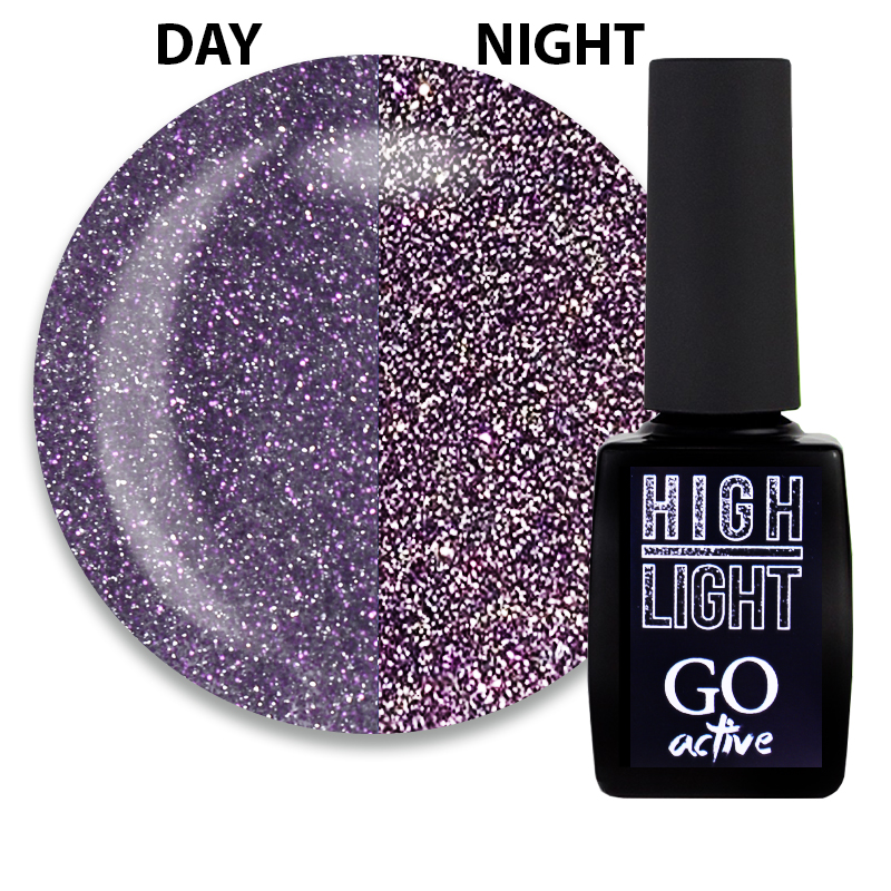 Світловідбиваючий ефект у нейл-дизайні один із найтрендовіших, яскравих та актуальних. GO Active High Light (Го Ектив Хай Лайт) - колекція гель-лакових покриттів, яка дуже вдало передає його і дозволяє легко втілити на нігтики. Кожен колір грає по-своєму, яскраво сяє і наче розсипає іскорки, як тільки на нього потрапляє промінь світла. Секрет такого ефекту - спеціальні дрібні світловідбиваючі частинки, якими щільно насичена текстура гель-лаків. Їх здатність до світловідбиття дуже висока, тому гель-лаки GO Active High Light буквально заворожують своїм сяйвом, яке змінює інтенсивність від спокійнішої до сліпуче яскравої (залежить від світла). М'яке мерехтіння вдень і максимально сильне під променями нічних софітів – успіх та захоплення гарантовані!