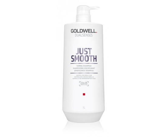Якщо ваші пасма досить неслухняні, часто пушать, електризуються і зовсім не піддаються укладання, Goldwell Dualsenses Just Smooth Taming Shampoo допоможе вам виправити цю ситуацію. Безпечний шампунь делікатно очищає локони, не пошкоджуючи їх структуру, не пересушуючи і не вимиваючи колір із фарбованого волосся. Після його застосування вам буде легше розчісувати пасма і створювати