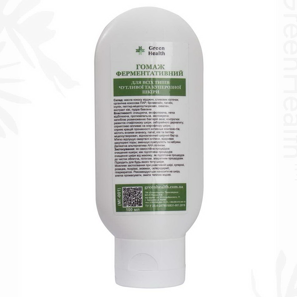 Гомаж ферментативний (для всіх типів чутливої та куперозної шкіри) Green Health МГ-001, 100 мл