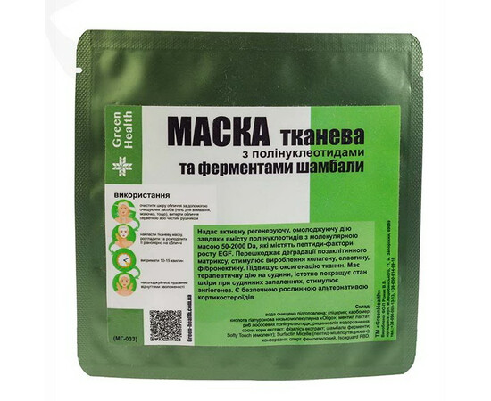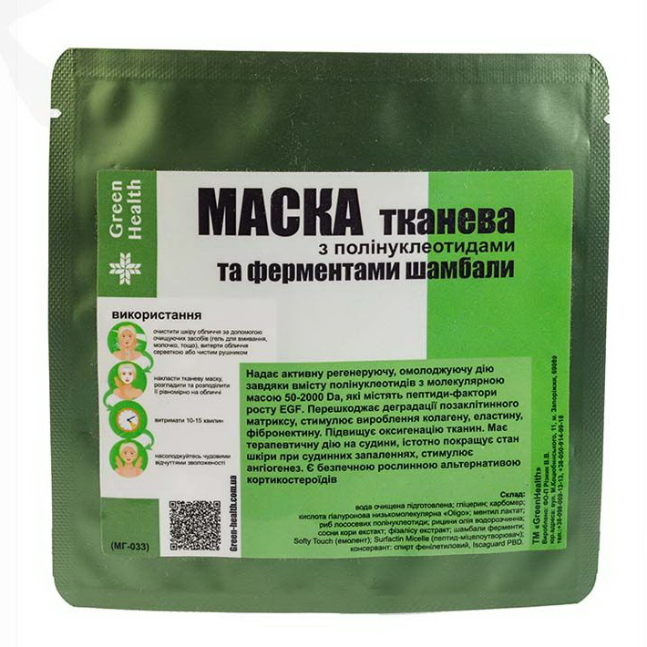 Маска тканева з полінуклеотидами та ферментами шамбали Green Health МГ-033