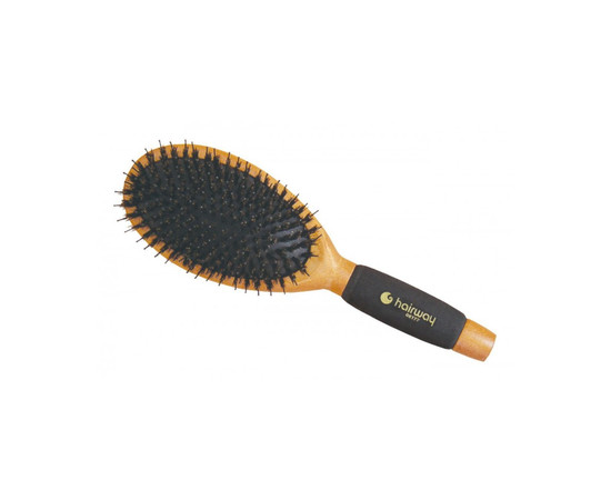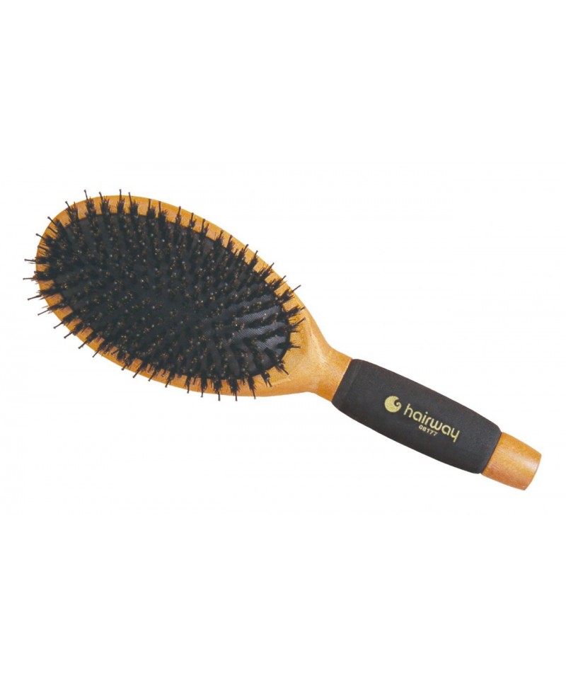 Щітка на дерев'яній основі з натуральною щетиною та нейлоновими штифтами. Полімерні ручки. Натуральна щетина дбайливо взаємодіє із волоссям. Надає природного блиску. Нейлонові штифти для кращого розчісування, розгладження та надання блиску волоссю.