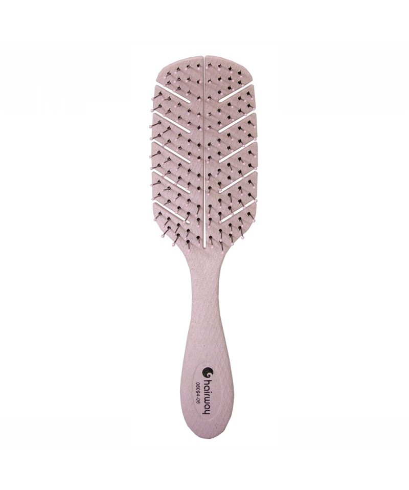 Щітка для волосся Hairway ECO Corn виготовлена з волокон пшениці, кукурудзяного крохмалю, маніоки та смоли. Це натуральна сировина, повністюбіорозкладається. Нейлонова щетина дозволяє щітці дбайливо розчісувати волосся.Щітка має приємний масажний ефект і не травмує шкіру голови, легко впорається змокрим і скуйовдженим волоссям.