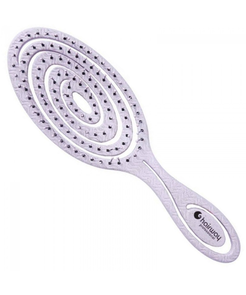 Щітка для волосся Hairway ECO Wheat виготовлена з волокон пшениці, кукурудзяного крохмалю, маніоки та смоли. Це натуральна сировина, що повністю біорозкладається.Нейлонова щетина дозволяє щітці дбайливо розчісувати волосся. Щітка має приємний масажний ефект і не травмує шкіру голови, легко впорається змокрим і скуйовдженим волоссям.