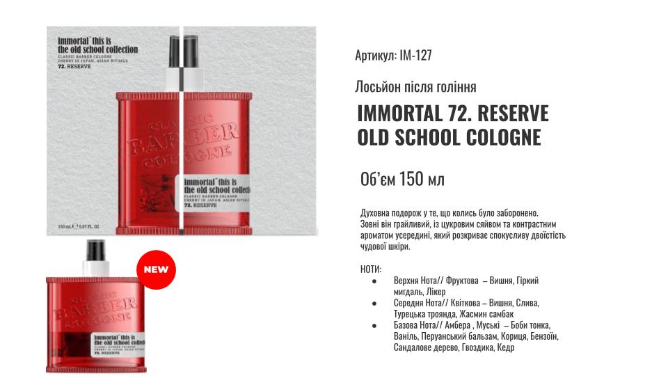Купити Одеколон після гоління Immortal Reserve 150 мл, № 72, ви зможете у нашому інтернет-магазині limonad з доставкою по всій Україні в тому числі і Київ, Дніпро, Одеса, Харків, Запоріжжя, Одеса, Львів та багато інших населених пунктів.
