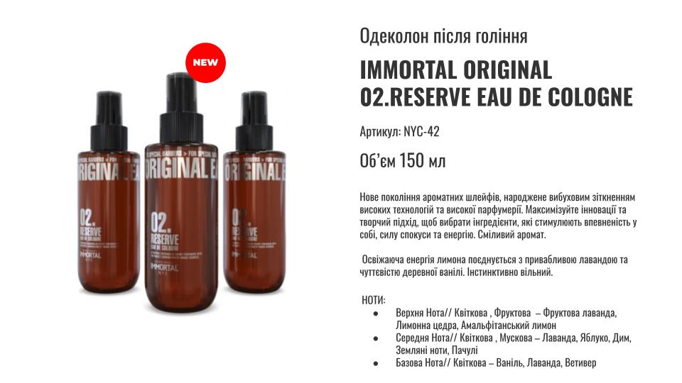 Міні-одеколон спрей після гоління Immortal Reserve 150 мл, № 02