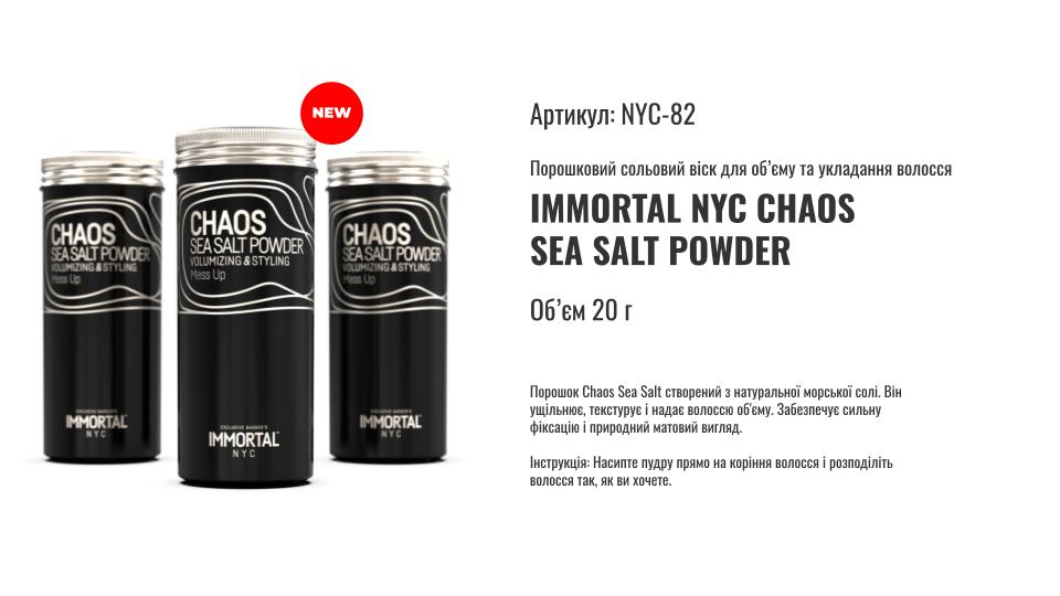 Пудра для волосся Immortal Chaos Sea Salt Hair Powder була спеціально розроблена з натуральної морської солі, щоб допомогти вам досягти найкращої скуйовдженої зачіски. Містить натуральну мінеральну сіль.
