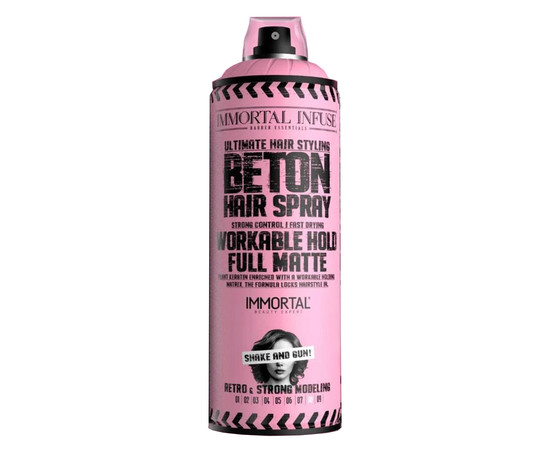 Гнучка фіксація. Збагачена комплексом кератину та утримуючою матрицею, що формується, формула фіксує вашу зачіску. Спрей для волосся Immortal Infuse із надпотужною утримуючою силою: ідеальний продукт для ретро-моделей і моделей, які виглядають жорстко, надають волоссю матовий вигляд. Він створює стійкі форми, які тримаються весь день, не обтяжуючи ваше волосся. Швидко висихає. Не залишає слідів на поверхні волосся, легко змивається. Без сульфатів, парабенів, фіталатів, не завдає шкоди волоссю.