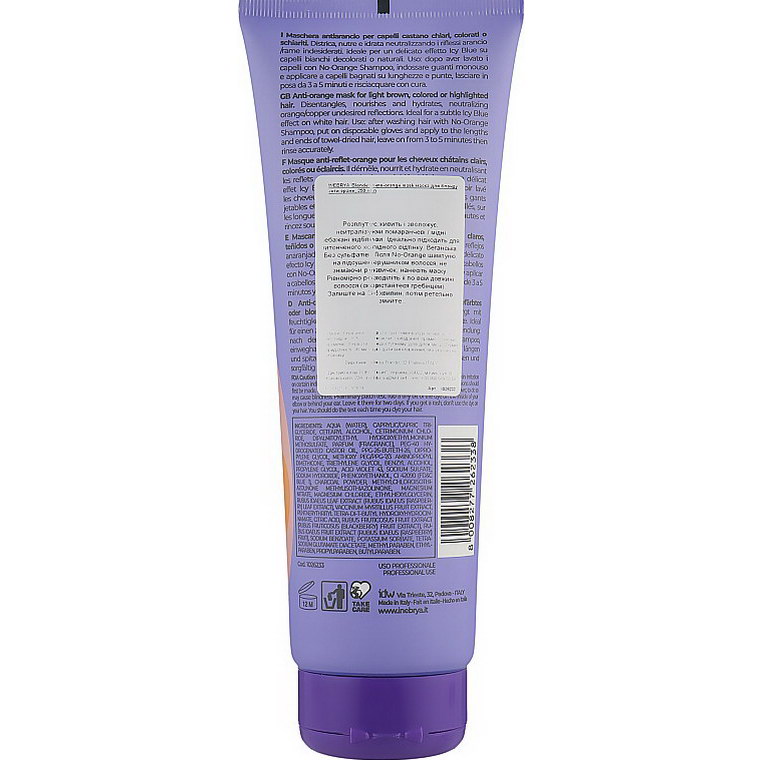 Помаранчевий підтон досить часто з'являється після фарбування і освітлення каштанового волосся. Щоб усунути небажаний відтінок, надати локонам м'якості та блиску, експерти бренда Inebrya створили спеціальну маску - Blondesse No-Orange Mask. Професійний б'юті-продукт має глибоку живильну і зволожувальну дію завдяки високій концентрації екстрактів ягід малини, чорниці та ожини. Засіб ефективно усуває помаранчевий колір, дарує локонам розкішне сяйво і шовковистість.