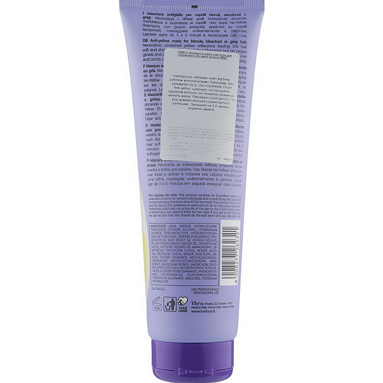 Власниці знебарвлених сивих і світлих локонів завжди стикаються з одним небажаним ефектом - появою жовтих плям, що мають некрасивий і недоглянутий вигляд. Вирішити цю проблему зможе маска бренда Inebrya, збагачена фіолетовими пігментами. Б’юті-продукт ефективно кондиціонує локони, нейтралізуючи жовті відтінки, та дарує їм м'якість. За регулярного застосування волосся стає «холоднішим» за кольором і блискучим.