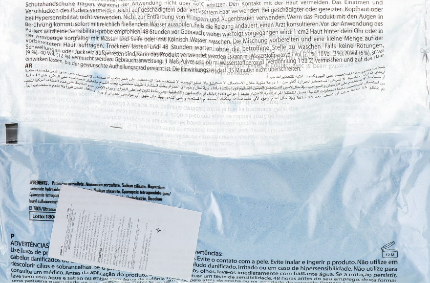 Спосіб застосування: змішати частину порошку з двома частинами перекису водню (10, 20, 30 або 40 тонів – 3, 6, 9% або 12%) і залишити на волоссі доти, поки не буде досягнутий результат, але не більше ніж на 35 хвилин.