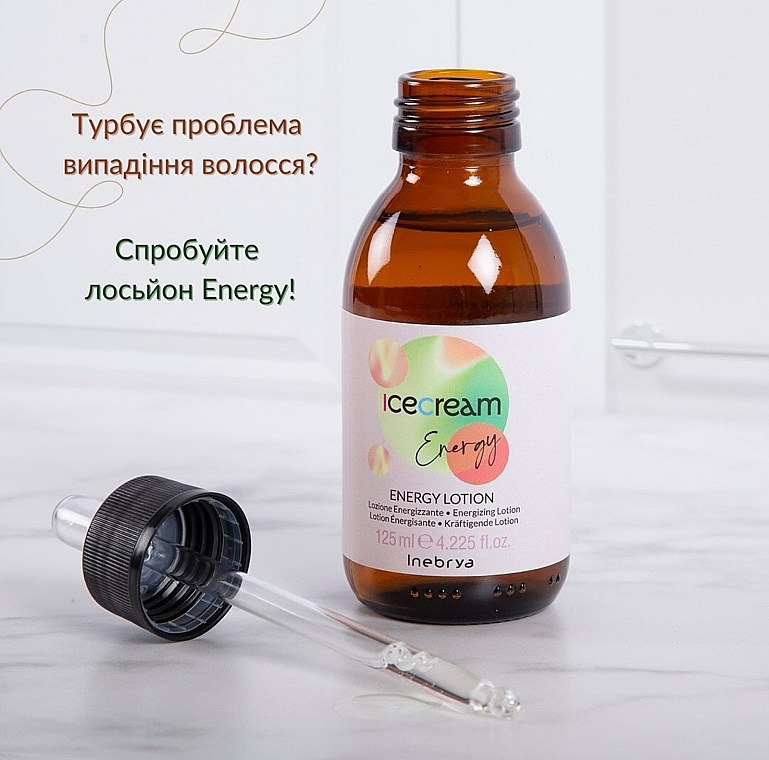 На жаль, багато людей стикаються з проблемою випадання волосся навіть у молодому віці. З метою зберегти розкішну шевелюру, її пишність і об’єм італійський косметичний бренд Inebrya презентує лосьйон проти випадіння волосся Ice Cream Energy Lotion Intensive. Це ідеальне рішення проблеми, яка доставляла вам дискомфорт і невпевненість у собі. Експерти італійського бренда розробили спеціальну формулу засобу, яка спрямована на оздоровлення шкіри голови.