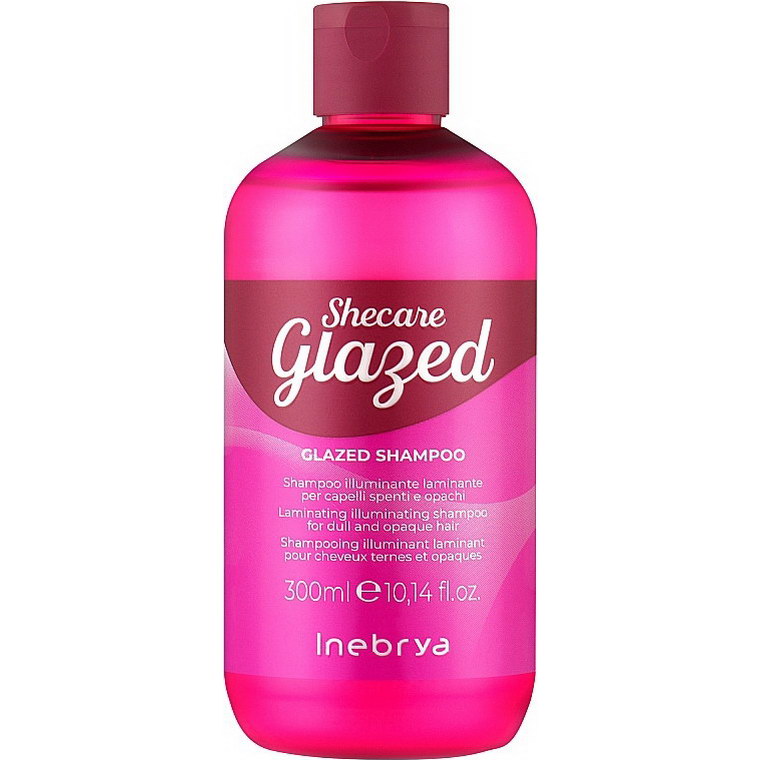 Shecare Glazed Shampoo — це шампунь для блиску волосся з ефектом глазурування. Цей продукт від італійського бренда Inebrya Cosmetics має унікальну формулу, яка зволожує, очищає і пом’якшує пасма. Ви можете використовувати цей шампунь для всіх типів волосся, особливо для пошкодженого. Він подарує локонам неймовірний блиск і сяйво.