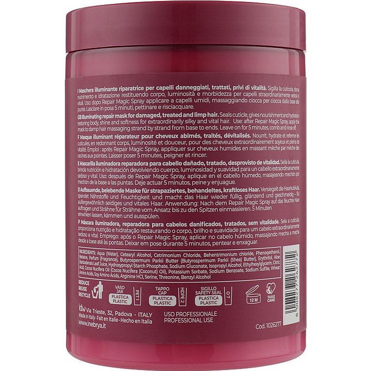 Ваше волосся настільки пошкоджене, що виникає бажання коротко підстригтися? Не поспішайте робити такі радикальні зміни в образі! Поліпшити стан локонів вам допоможе спеціальна відновлювальна маска-констурктор бренда Inebrya! Особлива формула б'юті-продукту на рослинній основі збагачена алое вера, маслом каріте та кератином. Маска ущільнює пасма, живить, відновлює, посилює яскравість відтінку локонів!