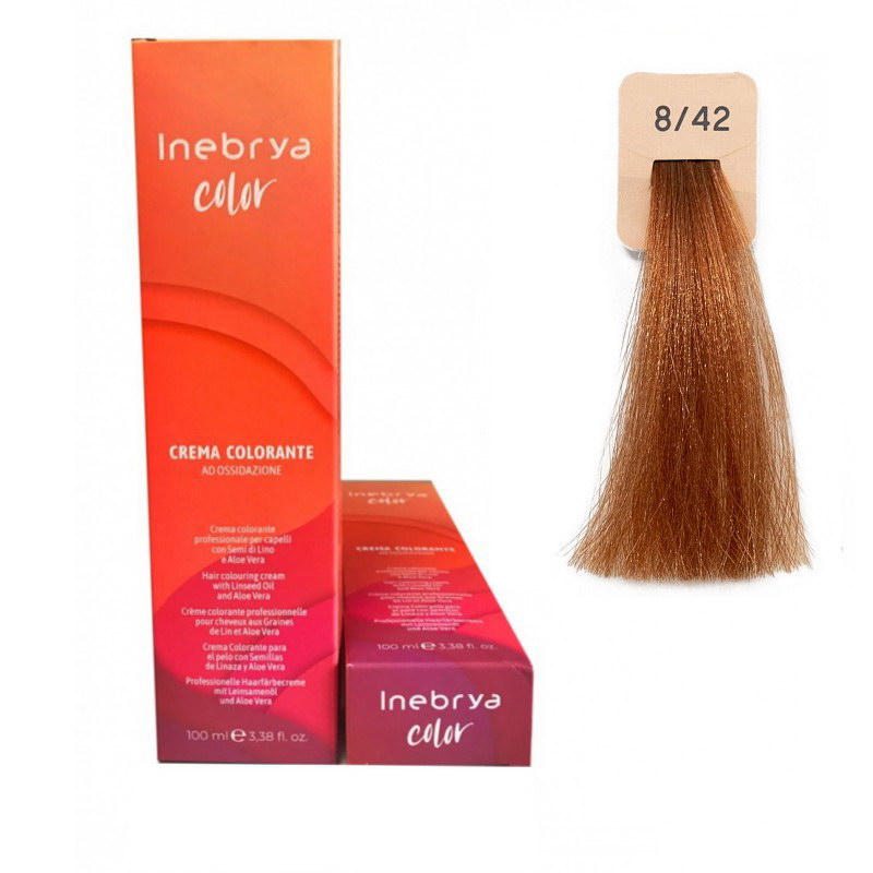 Крем-фарба для волосся з аміаком Inebrya Color 8/42 світло-русявий блондин коньячний, 100 мл