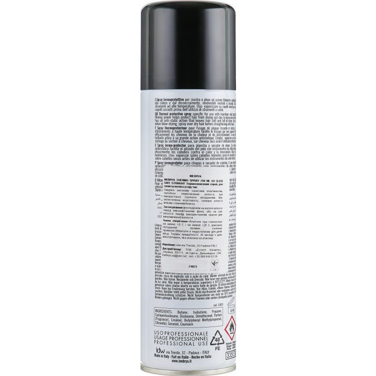 Термозахисний спрей італійського бренда Inebrya можна використовувати для всіх типів волосся. Він чудово захищає мокрі і сухі пасма від руйнівної сили термообробки, допомагає створити ідеальну укладку, дарує локонам приємну м'якість, шовковистість, привабливий блиск, знімає статику. Засіб легко фіксує форму зачіски, робить її пружною, легкою, красивою.