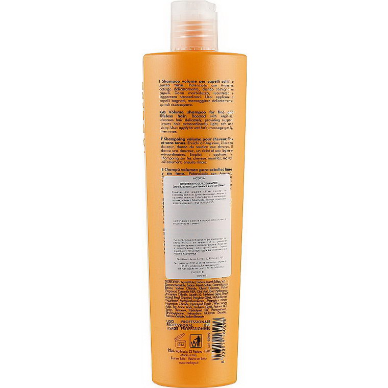 Цей шампунь, що розроблений компанією Inebrya, призначений для догляду за тонким волоссям. Засіб дбайливо та акуратно очищає прядки від забруднень, а також пожвавлює волосся, дарує прядкам неймовірний об’єм, силу, життєву енергію та дивовижний блиск. Шампунь дарує волоссю і шкірі голови чудову чистоту й свіжість. Після застосування продукту Ice Cream Volume Shampoo бренда Inebrya ваше волосся стає м’яким, легким, здоровим та доглянутим. Користуйтеся цим шампунем і насолоджуйтеся бездоганним виглядом та силою своїх оновлених локонів.