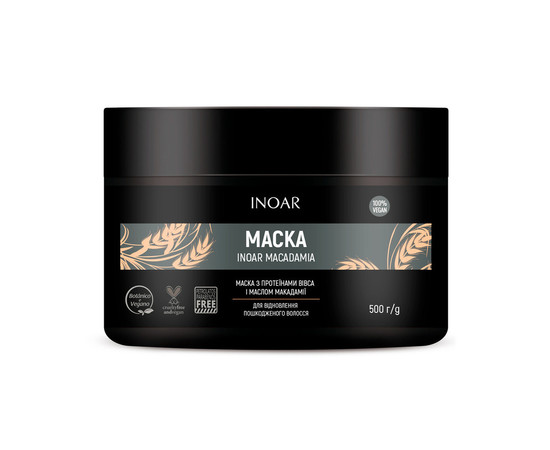 Ліпідна зволожуюча та відновлююча маска для волосся з олією макадамії від Іноар.