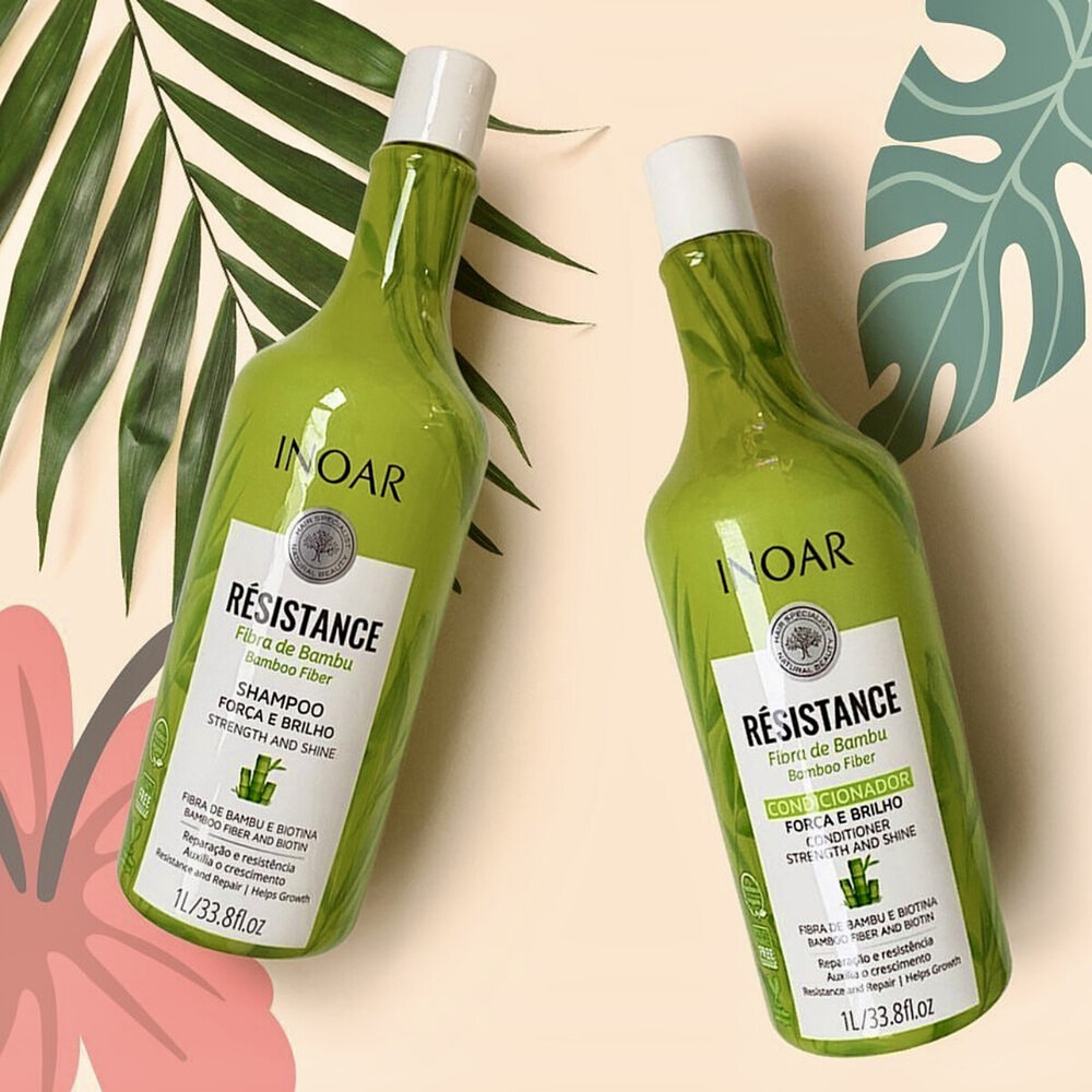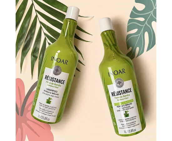 Шампунь INOAR Resistance Fibra de Bamboo зміцнює волосся, надає йому особливого блиску і запобігає появі посічених кінчиків. Засіб дбайливо очищає, не обтяжуючи волосся. Шампунь активно зволожує, зміцнює, зменшуючи їх випадання. Ідеально підходить для розгладження волосся.