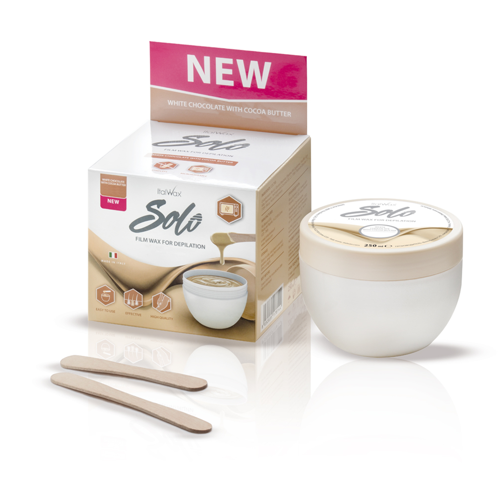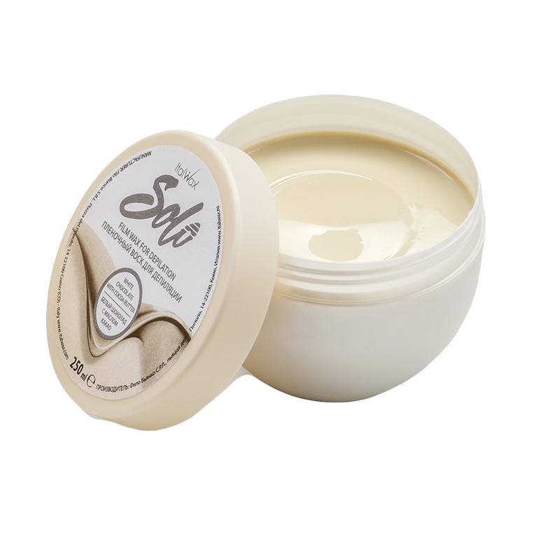 Плівковий віск "Білий шоколад" містить масло какао, яке піклується за шкірою під час процедури. Після депіляції шкіра стає м’якою, оксамитовою та залишається гладкою до 4-х тижнів.