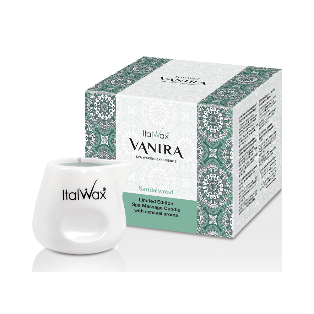 Свічка-олія з ароматом сандалу для ароматичної спа-депіляції. 100% натуральний продукт виготовлений з твердого натурального масла. При нагріванні перетворюється в теплу рідку олію. Сприяє швидкому відновленню шкіри після депіляції. Використовується для масажу. Має чудовий аромат.