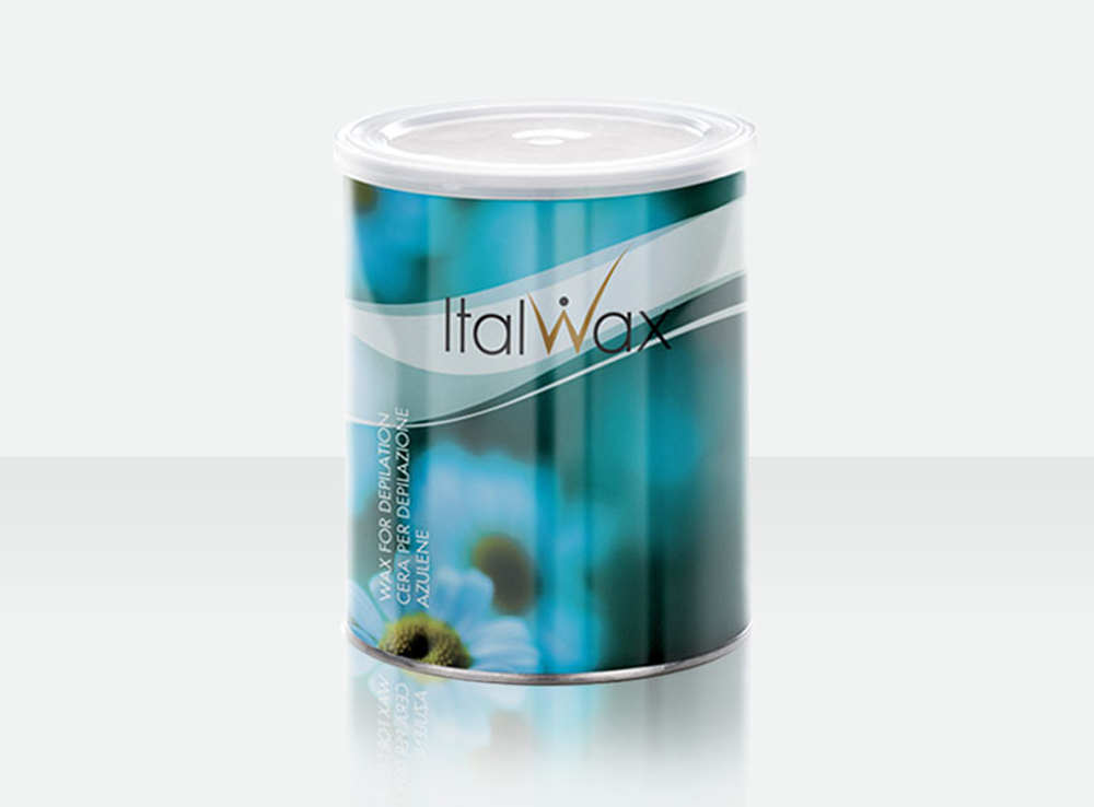 Теплый воск в банке Ital Wax, азулен — предназначен для депиляции больших участков наименее чувствительной кожи (ноги, руки, спина, грудь). Данный вид воска наносится на подготовленный участок кожи с помощью шпателя. Рабочая температура воска 39-40°C. Благодаря хорошей текстуре и консистенции он легко наносится. Хорошо ложится на кожу, подходит для всех типов кожи. Теплым воском нужно работать в бандажной технике: воск наносится шпателем, а снимается с помощью специальных полосок из плотного натканного материала. В данном воске присутствует такая добавка как диоксид титана.Диоксид титана (Titanium Dioxide) — придает воску высокую пластичность, позволяя наносить его гладко в 1 движение, уменьшая адгезию воска к коже, а также облегчая последующие снятие воска. Воски с этой добавкой разрабатывались специально для работы с очень чувствительной кожей.Технология проведения депиляции теплым воском в банках:Первое что нужно сделать, разогреть банку с воском в баночном воскоплаве. Поместить воск в воскоплав на 20-30 минут, хорошо разогретый воск должен обладать жидкой консистенцией.Настоятельно рекомендуется перед любыми процедурами депиляции кожу обработать антисептиком. После чего обработать и очистить кожу и волоски с помощью лосьона. Остатки лосьона можно убрать с помощью одноразовой косметической салфетки, так как кожа перед процедурой должна быть сухой.Не стоит забывать и о применении талька, для улучшения сцепления воска с волосками.После чего нанести воск по направлению росту волос. Затем приглаживающими движениями приклеить полоску.Бумагу нужно отрывать против роста волос резким движением, придерживая участок кожи. Помните, что кожа должна всегда быть натянутой, а не тянуться за полоской!После процедуры депиляции стоит воспользоваться средством после депиляции, чтобы увлажнить, успокоить, а также убрать остатки воска с кожи.Для замедления роста волос после процедуры можно воспользоваться специальным средством для замедления роста волос.После эпиляции в течении 2-3 дней лучше не посещать сауну, баню, солярий не раздражать кожу механическим трением.