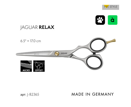 Оберіть ножиці Jaguar Prestyle Relax для вашої роботи та переконайтеся, що комфорт і точність стрижки доступні з кожним рухом!