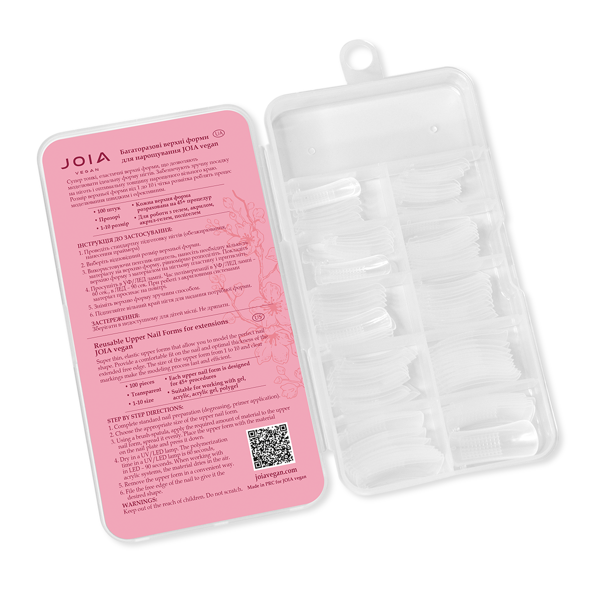 Верхні форми для нарощування нігтів JOIA vegan reusable top molds for extensions, 100 шт.