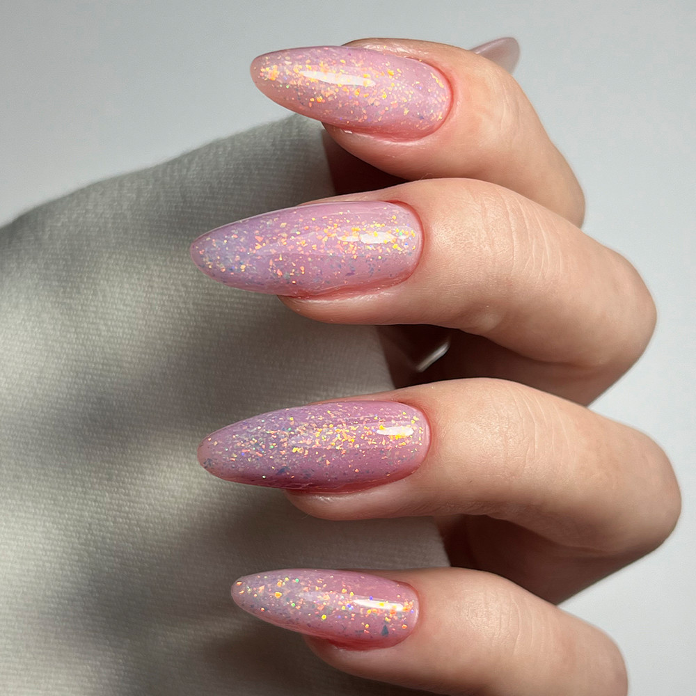 - Нанесіть дуже тонкий шар UV/LEDPolyLiquid Gel JOIA vegan. Полімеризуйте в LED-лампі 60 секунд.