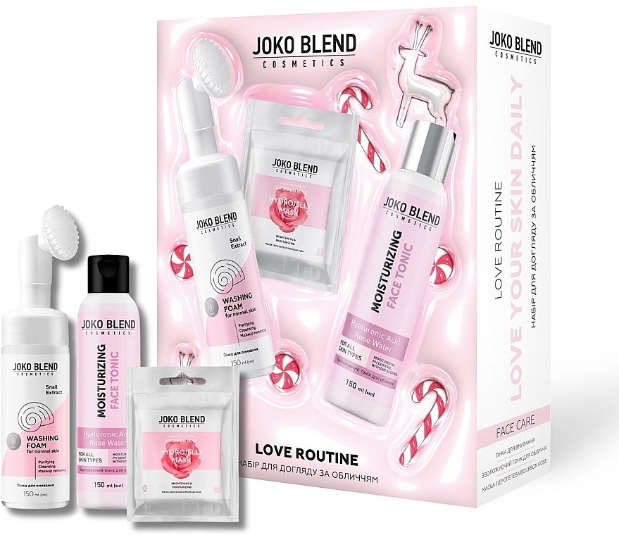 Набір новорічний для догляду за обличчям Joko Blend Love Routine, Пінка 150 мл + Тонік 150 мл + Маска 20 г