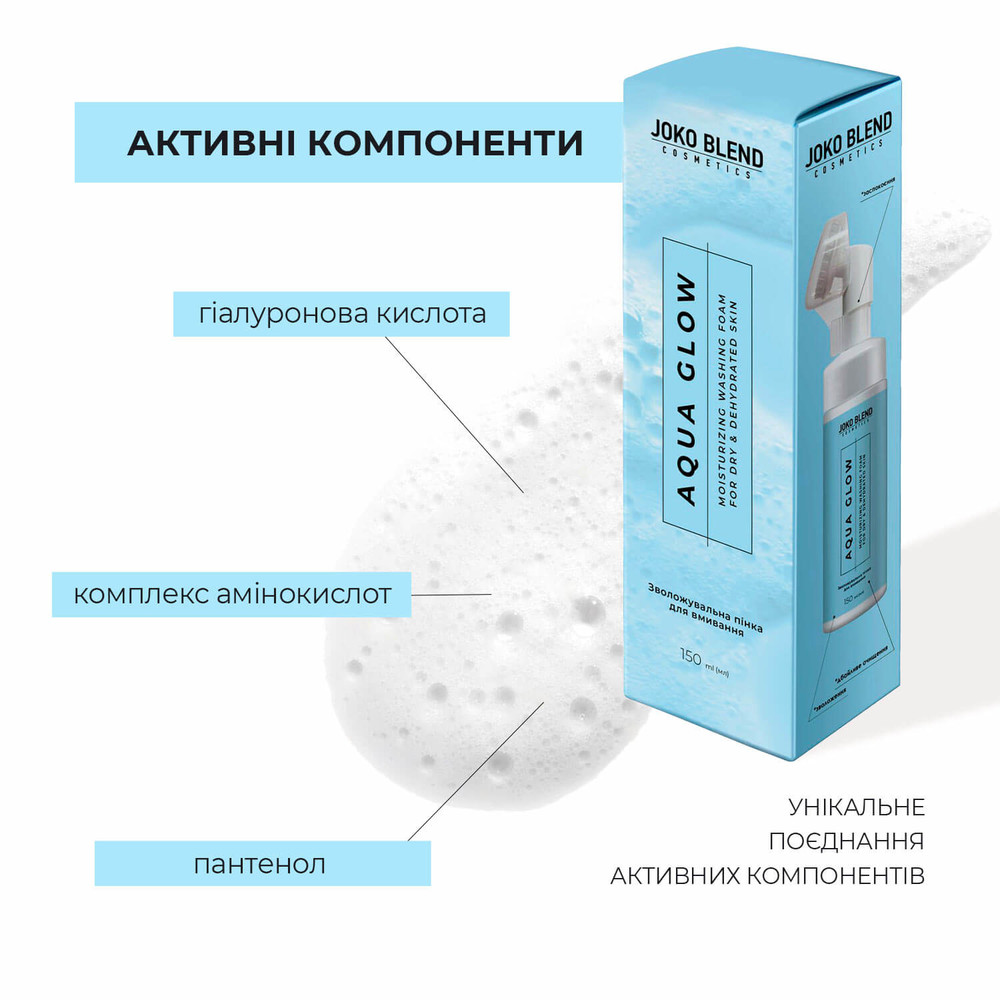 Зволожуюча пінка для вмивання з гіалуроновою кислотою Joko Blend Aqua Glow Washing Foam, 150 мл