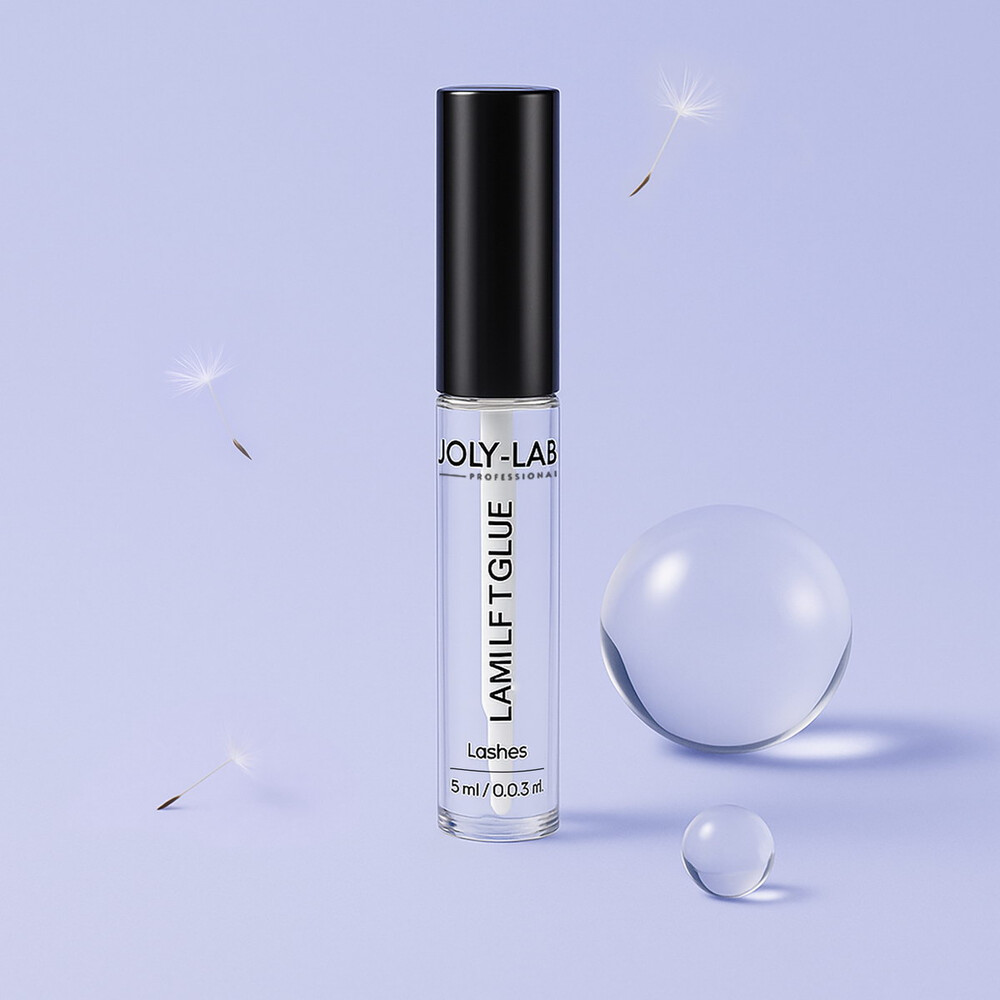 Клей для ламінування вій Lami Lift Glue Joly:Lab 5 мл допомагає надійно зафіксувати вії на силіконовому валику та не перешкоджає дії складників для ламінування.