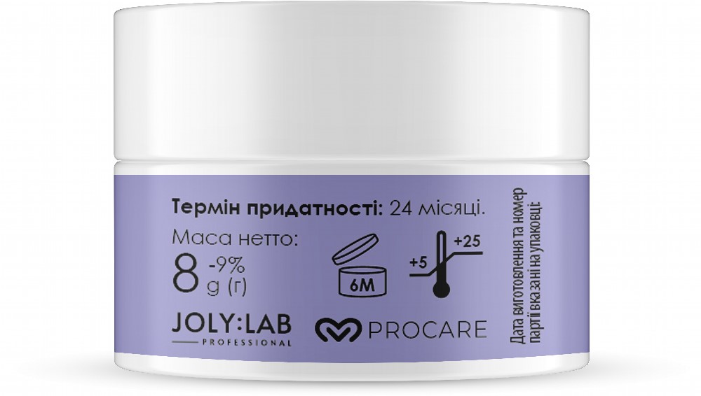 Захисний аргановий крем для брів та вій JOLY:LAB – це інноваційне рішення, призначене для живлення, зміцнення та захисту брів та вій. Крем впливає на ніжні волоски брів і вій, забезпечуючи їх необхідними поживними речовинами та вітамінами для оптимального здоров'я і життєвої сили. Легка, нежирна текстура забезпечує легке вбирання, не залишаючи слідів. Арганова олія багата на незамінні жирні кислоти, антиоксиданти і вітамін Е, які допомагають зволожувати і зміцнювати волосяні фолікули. Масло дерева ши, що є у складі засобу, захищає від шкідливих сонячних променів. Крем також допомагає запобігти сухості і ламкості, зберігаючи брови та вії м'якими, еластичними та блискучими. При проведенні процедур ламінування або фарбування брів крем наноситься в зоні дії засобів, щоб захистити шкіру та волоски від хімічного впливу. Засіб має вишуканий парфумований аромат з фруктовими нотами в поєднанні з ароматом мускусу, ванілі та сандалу.